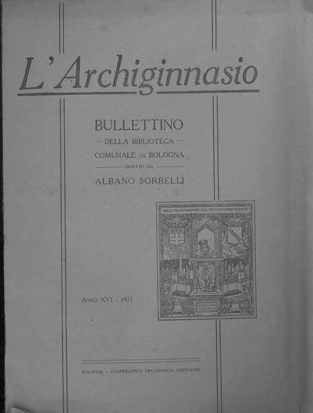 L' Archiginnasio. Bullettino della biblioteca comunale di Bologna. Anno XVI, 1921. Annata completa