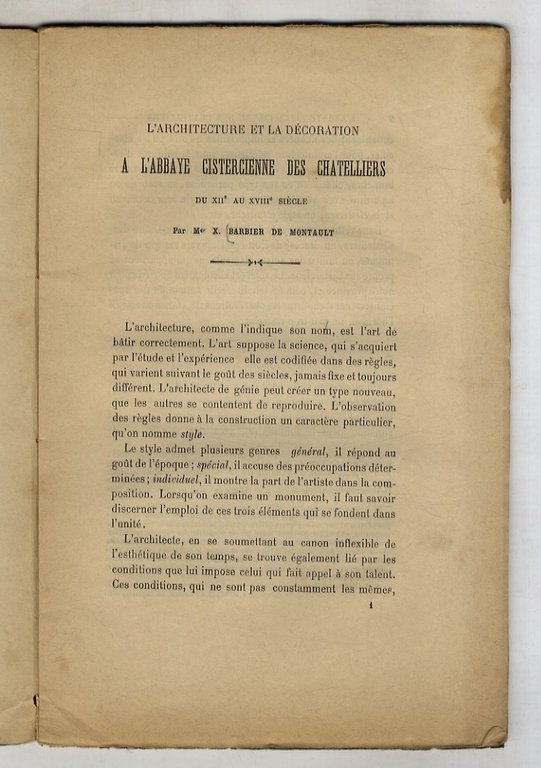 Poitiers, Imprimerie Blais, Roy et C.ie, 1891, in-8, br. muta coeva, pp. 54, [2]. Estratto da "Memoirs de la Société des Antiquaires de l'Ouest".