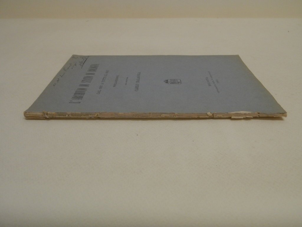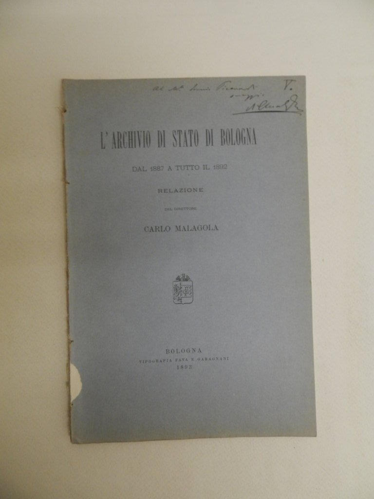 8^, pp. 25, appendice comprendente 22 p. di tavole con l'inventario delle raccolte dell'Archivio e una tavola più volte ripiegata con la pianta dell'Archivio. Conserva la prima copertina con titolo e dedica autografa dell'autore. Esemplare molto buono e intonso. *** TUTTI I NOSTRI LIBRI SONO VISIBILI PREVIO CONTATTO MAIL O TELEFONO NELLA NUOVA SEDE DI MILANO: LIBRERIA COSMOPOLIS, VIA JOMMELLI, 22. ***