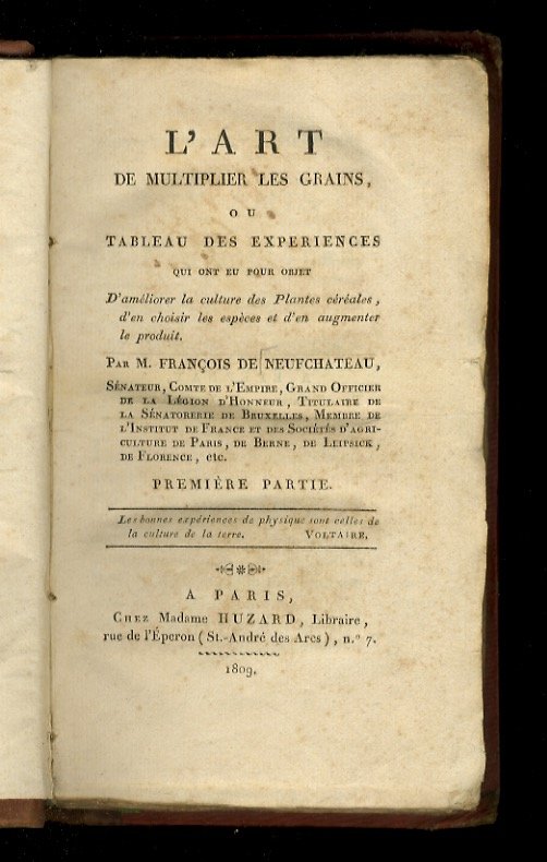 L'Art de multiplier les grains ou tableau des experiences qui ont eu pour objet, d'améliorer la culture des Plantes céréales, d'en choisir les espèces et d'en augmenter le produit.