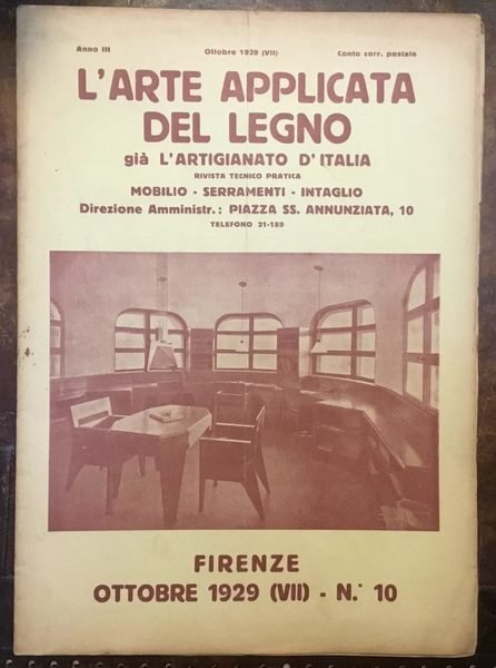 L’Arte applicata del legno, già L’Artigianato d’Italia, Rivista tecnico pratica. Anno III. Ottobre 1929, n.10