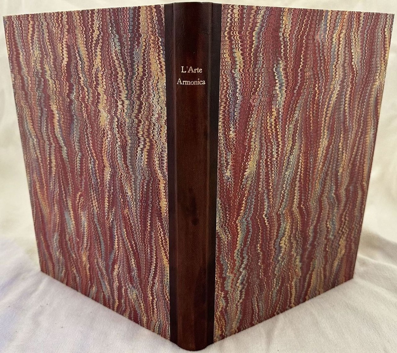 Rarissima prima edizione del 1760 di questo manuale sulla produzione della musica a cura del compositore e teorico Giorgio Antoniotto (1692-1776). Noto violinista e violloncellista ebbe modo di frequentare diverse Corti europee come Vienna, Parigi, Madrid e Lisbona. Durante la sua permanenza in Inghilterra pubblicò "L'arte armonica" scritto in italiano ma tradotto e pubblicato in inglese. La prefazione di questo volume venne tradotta da Samuel Pegge. In questo manuale Antoniotto propone un sistema di composizione utilizzando come basso fermo il primo e quinto grado della scala nella tonalità del pezzo, che si pone come guida della melodia. L'opera è composta da due volumi ed è completa. Il primo tomo è sulla teoria, il secondo tomo sono 62 tavole (una delle quali ripiegata) con schemi e partiture musicali. In ottime condizioni. Copertina in mezza pelle moderna con titolo in oro al dorso in ottime condizioni generali con lievi usure ai margini e dorso. Legatura in ottime condizioni. All'interno le pagine si presentano in buone condizioni con fioriture. In folio. Dim. 32,5x23,5 cm. Pp. (10)+109+(1)+62 pl.Very scarce first edition of 1760 of this manual about the production of music by the composer and theorian Giorgio Antoniotto (1692-1776). Famous violin and violoncello player he frequented different european Courts as Vienna, Parigi, Madrid e Lisbona. During his permanence in England he published "L'arte armonica" written in italian but translated and published in english. The prefation of this volume was translated by Samuel Pegge. In this manuale Antoniotto proposes a compositional system using as immovable bass the first and fifth scale degrees in the tonality of the piece, which he terms principal and guide. Related to this immovable foundation, he generates a fundamental counterpoint for harmonic progression and as a foundation for the fundamental harmony which gives rise to the chordal structures and melodic contours of the music. The work is made up of two volumes bound together and it is complete. The first tome is about theory, the second tome contains 62 plates (one of them is folded) with schemes and scores. In very good conditions. Half leather modern cover with gilted title in the spine in very good general conditions lightly worn in the extremities. Stains. Binding in very good conditions. Inside pages are in good conditions with foxing. In folio. Dim. 32,5x23,5 cm. Pp. (10)+109+(1)+62 pl.<BR><BR>