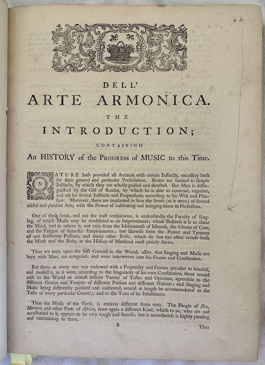 L'ARTE ARMONICA OR A TREATISE ON THE COMPOSITION OF MUSICK IN THREE BOOKS WITH AN INTRODUCTION ON THE HISTORY AND PROGRESS OF MUSICK FROM ITS BEGINNING TO THIS TIME