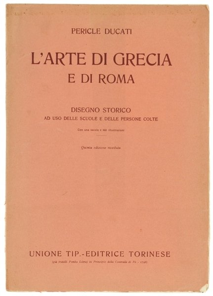 L'ARTE DI GRECIA E DI ROMA. Disegno storico ad uso delle scuole e persone colte. | Libri antichi e moderni | Ducati Pericle.