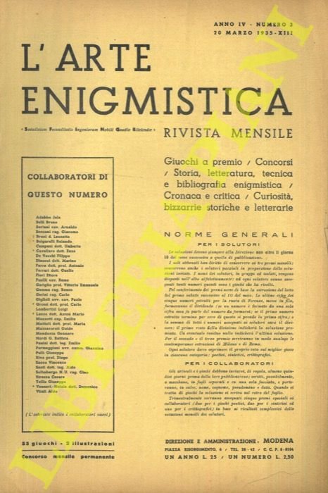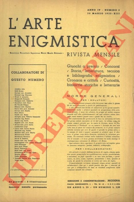 Modena, 1935, 20 marzo, A. IV, n° 3, fasc. di pp. 8
