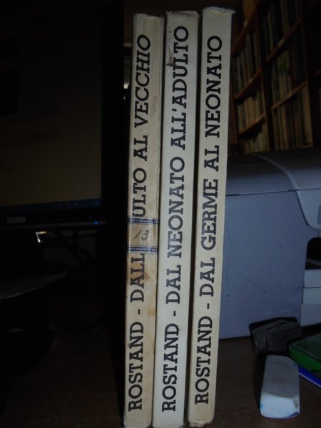 DAL GERME AL NEONATO, ANNO 1936, 176 PP. DAL NEONATO ALL' ADULTO, ANNO 1936, 207 PP. DALL' ADULTO AL VECCHIO, ANNO 1943, 200 PP. 3 VOLUMI IN - 8°, CARTONCINO EDIT. OPERA RARA A TROVARSI COMPLETA. IN OTTIMO STATO DI CONSERVAZIONE. Neg. mob. nero
