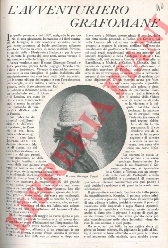 L'avventuriero grafomane. (Conte Giuseppe Garani)