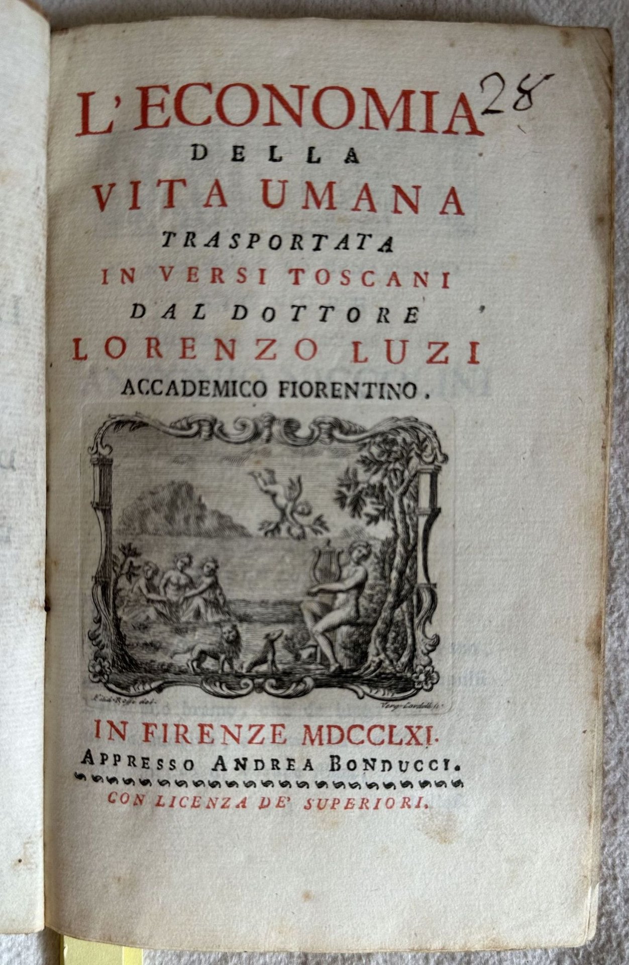 L'ECONOMIA DELLA VITA UMANA TRASPORTATA IN VERSI TOSCANI DAL DOTTORE LORENZO LUZI