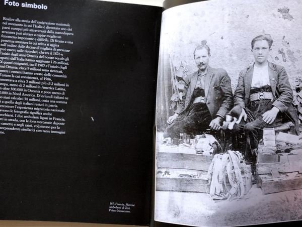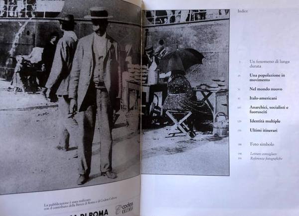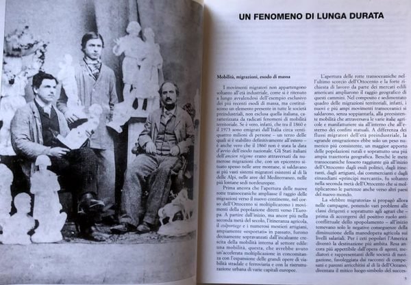 Soggetti: Politica, Società, Cultura, Problemi sociali, Emigrazione, Emigrati, Libri illustrati, Fotografie, Italia repubblicana, 1945-1967, Ricostruzione postbellica, Boom economico, Dopoguerra, Operai, Italia meridionale, Fabbriche, Lavoro, Nord, Torino, Milano, FIAT, Mobilità nazionale, Calabresi, Calabria, Napoli, Sudamerica, Viaggio, Oceano, Stati Uniti, Argentina, Emigranti, Rimesse, Estero, Economia, Storia sociale contemporanea, Novecento, Libri Vintage, Fuori catalogo, Saggi, Bibliografia, Germania, Francia, Belgio, Integrazione, Identità, Australia, Ambulanti, Esperienza migratoria, Cronache, Mondo nuovo, Anarchici, Italo-americani, Socialisti, Fuoriusciti, Mafia, Criminalità, Comunità, Fine Ottocento, Colportage, Mestieri artigiani, Itineranza agricola, Lavoratori salariati, Ceti popolari, Xenofobia, Razzismo, Discriminazioni, Eccidi, Aigues Mortes, Saline, Fangouse, New York, Little Italy, Brasile, Santos, Navi, Fascismo, Paesani, White Ethnics, The Italian Experience, Philadelphia, Fellow ethnics, Immigrati, Politics, Society, Culture, Social problems, Emigration, Emigrants, Illustrated books, Photographs, Republican Italy, Post-war reconstruction, Economic boom, Postwar period, Workers, Southern Italy, Factories, Work, North, Turin, National mobility, Calabresi, Naples, South America, Travel, Ocean, United States, Emigrants, Remittances, Abroad, Economy, Contemporary social history, Twentieth century, Books out of print, Essays, Bibliography, Germany, France, Belgium, Integration, Identity, Itinerant, Migration experience, Chronicles, World new, Anarchists, Italo-Americans, Socialists, Leavers, Crime, Community, Late 19th century, Craftsmen, Agricultural itineraries, Salaried workers, Popular classes, Xenophobia, Racism, Discrimination, Brazil, Santos, Ships, Fascism , Villagers, Immigrants, Photographic history of Italian society