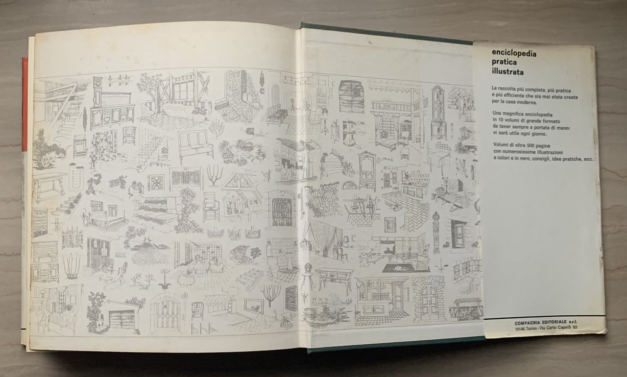 I ed. italiana: 25 ottobre 1968 (ed. originale: L'encyclopédie des jardins et des maisons de campagne, Paris, Culture, Art, Loisirs 1967). Collana di enciclopedie pratiche - Volume quarto. XVI grande quasi quadro/520 con « unghiature »/cart./sovraccoperta patinata. Con 450 disegni in nero, colore e a colori, 140 fotografie a colori e 2000 suggerimenti pratici. Fogli di guardi in cartoncino liscio bianco con disegni in grigio. Stato buono (usura della sovraccoperta - volume nel complesso brunito e con fioriture).