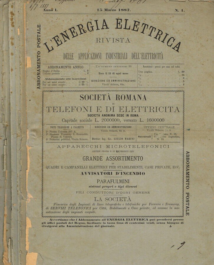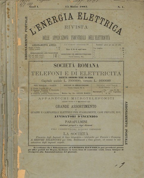 L'energia elettrica. Rivista delle applicazioni industriali dell'elettricità. Anno I, fasc.1/12. Anno II fasc.I3 | Libri antichi e moderni |