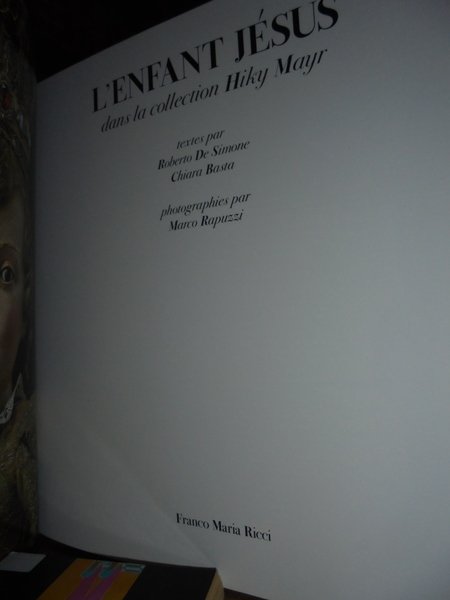 Textes par Roberto De Simone, Chiara Basta. L' Enfant Jésus dans la collection Hilky Mayr. Milano, Franco Maria Ricci, 2001. In-4° (cm. 30 x 30), tela nera con sovracopertina. 95 pp. con magnifiche illustrazioni fotografiche a colori anche a piena e doppia pagina. Testo in francese. Esemplare in stato di nuovo. Neg. mob. nero