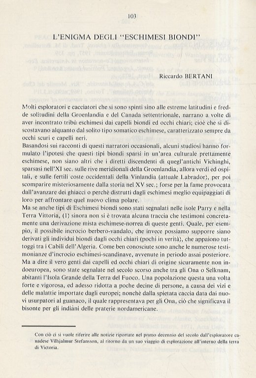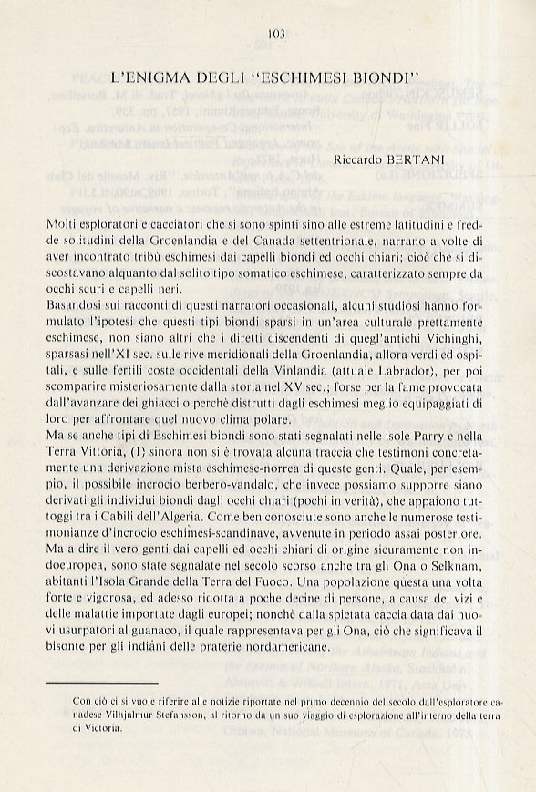 L'enigma degli “Eschimesi biondi”. (Segue:) BORSATO A. In estate alle Svalbard. In: “Il Polo”. Rivista trimestrale dell'Istituto Geografico Polare, 1981.