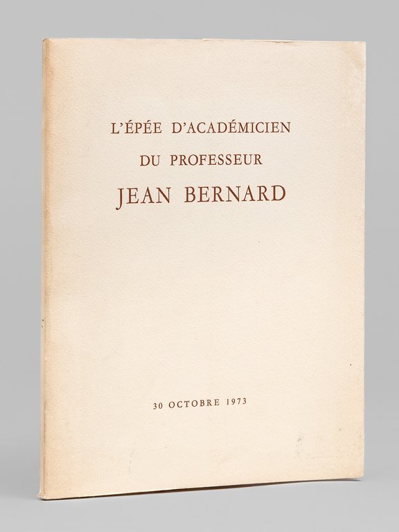 L'épée d'Académicien du Professeur Jean Bernard. 30 octobre 1973 [ Livre dédicacé par l'auteur par le Professeur Jean Bernard à Maurice Druon ]
