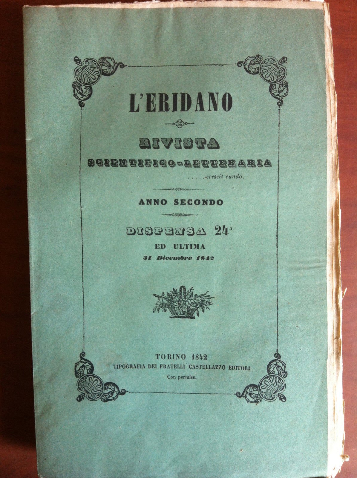 L'ERIDANORivista scientifico-letterariaAnno secondo Dispensa 24^ ed ultima31 Dicembre 1842da pagina 437 a pagina 480 - formato 16x25 cmin ottime condizioni (70 g) E14006