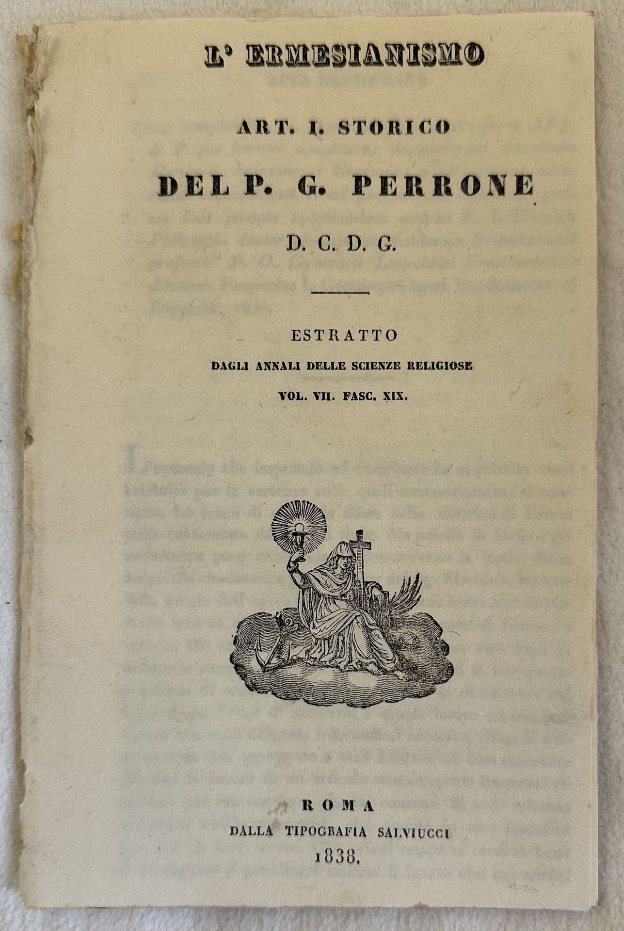 L'ERMESIANISMO ART. I. STORICO DEL P. G. PERRONE ESTRATTO DAGLI ANNALI DELLE SCIENZE RELIGIOSE VOL. VII FASC. XIX