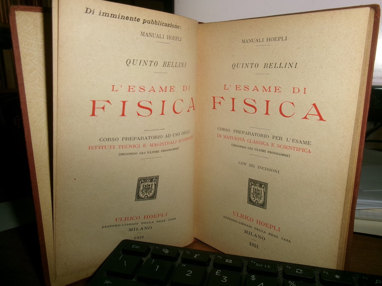 L' Esame di Fisica (Maturità Classica e Scientifica) Q. BELLINI 1931 . HOEPLI