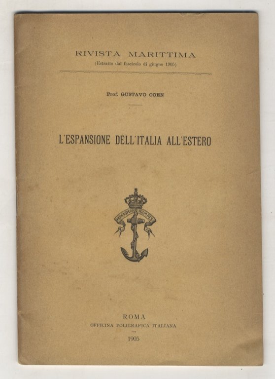 Roma, Officina Poligrafica Italiana, 1905, in-8, brossura editoriale, pp. 51. Estratto dalla "Rivista Marittima".