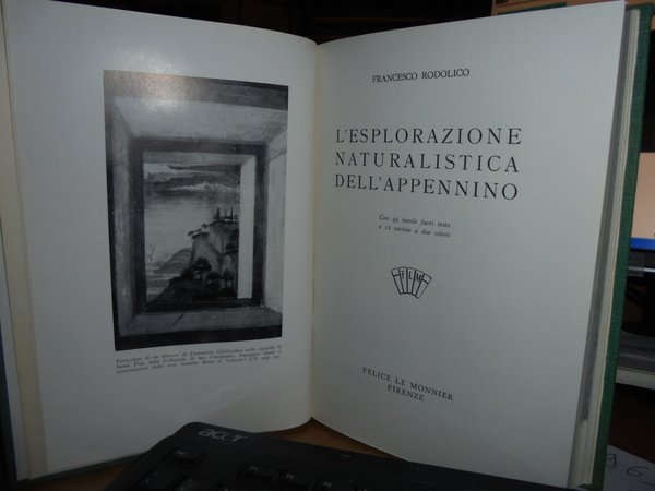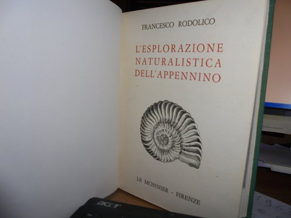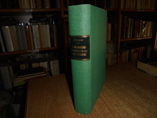 Francesco, Rodolico. Firenze, Le Monnier, 1963. L' Esplorazione Naturalistica dell' Appennino. In-8°, tela verde con titolo in oro al dorso, copertine originali conservate. viii, 433, (1) pp. con 45 tavole fuori testo stampate su carta patinata e 12 cartine a due colori. Esemplare come nuovo in legatura recente con le brossure originali conservate. L' edizione originale di questo libro si compone di melleseicentocinquanta esemplari numerati. es. n° 306. Neg. mob. rosso
