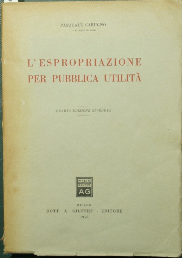 L'espropriazione per pubblica utilità | Libri antichi e moderni | Carugno Pasquale