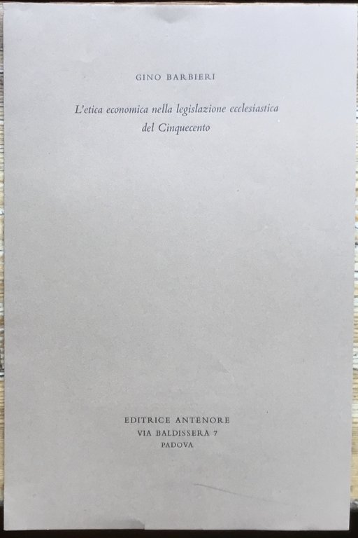 L’etica economica nella legislazione ecclesiastica del Cinquecento