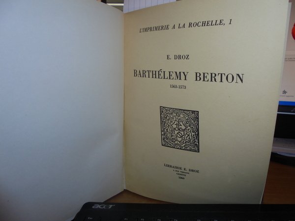 L' Imprimerie a la Rochelle 1.2.3. Barthélemy Berton 1563 -1573