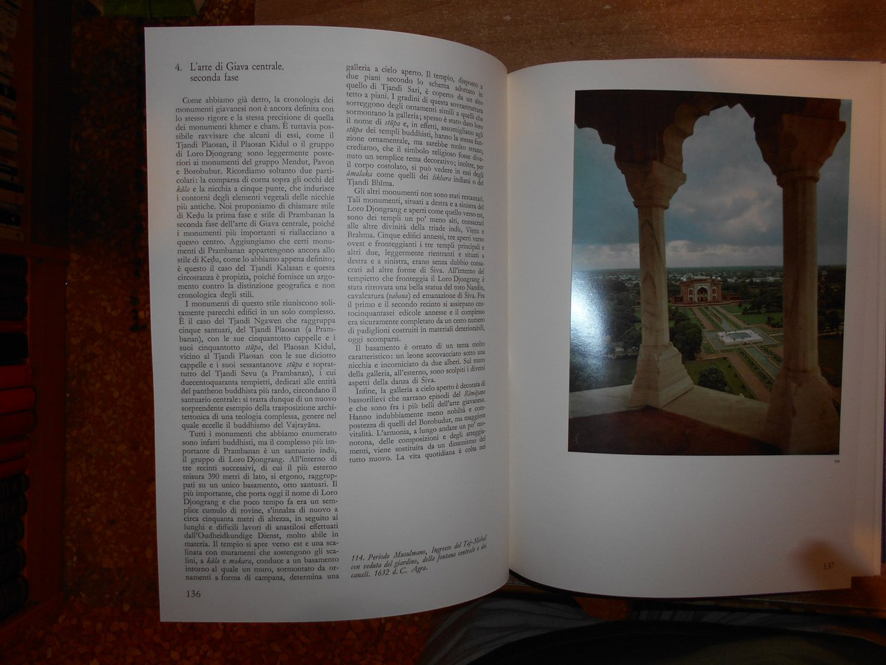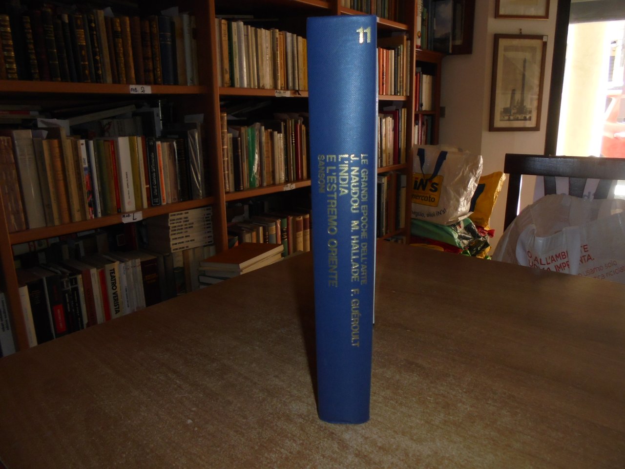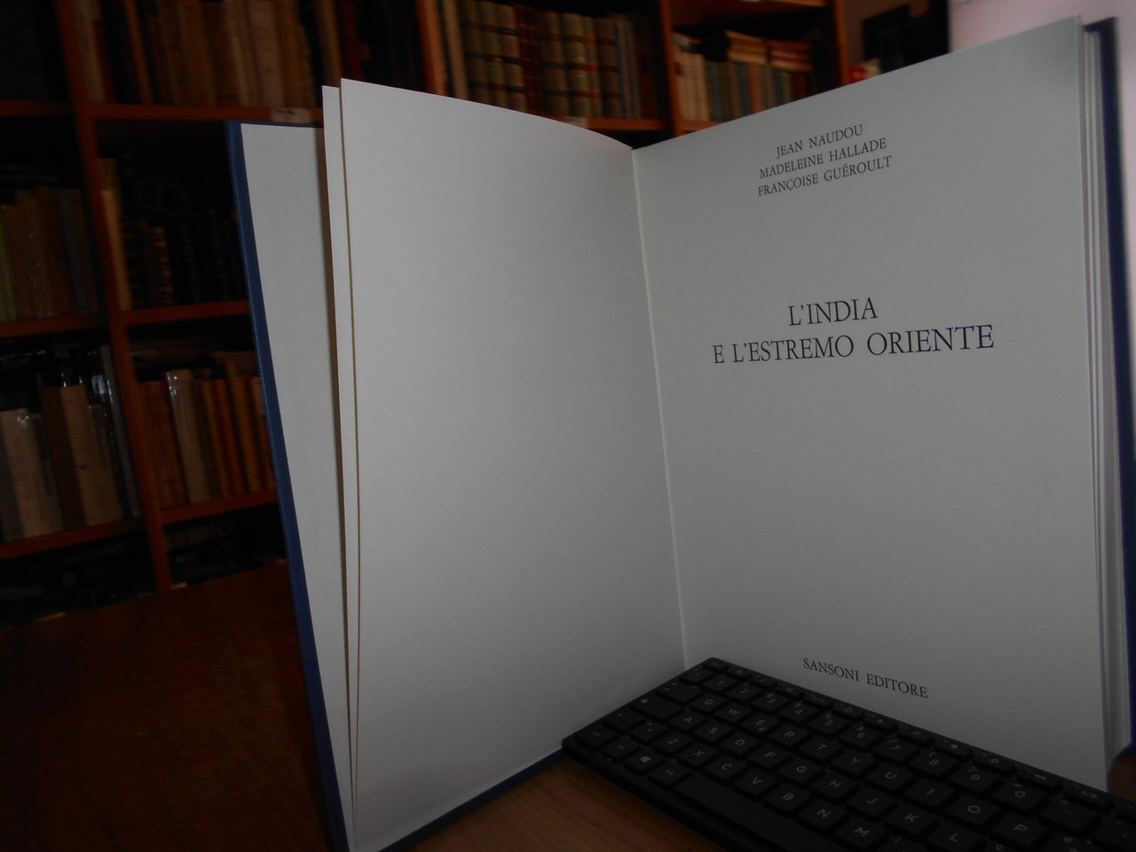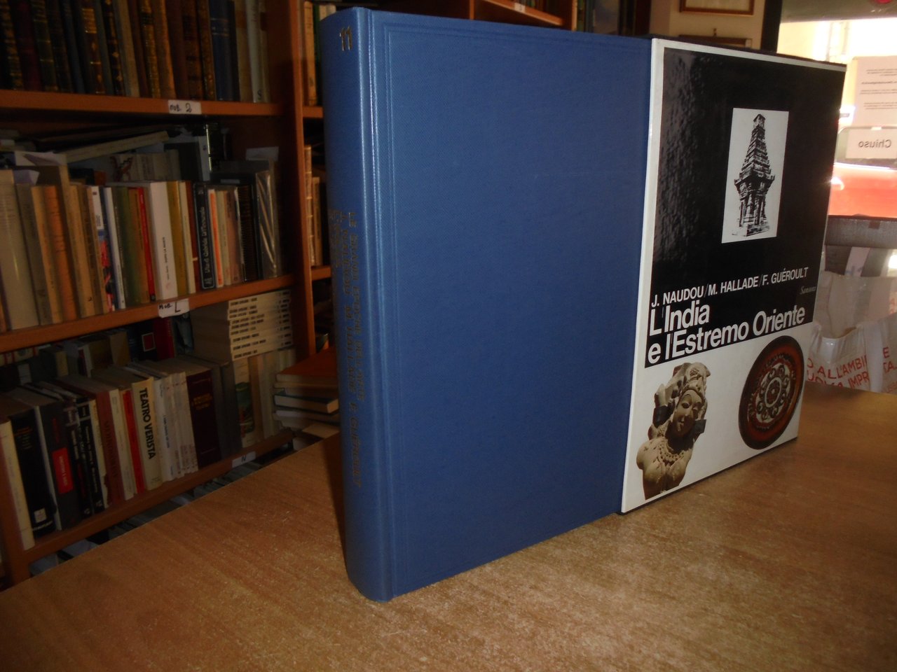 J. NAUDOU/M. Hallade/F. Guéroult. Firenze, Sansoni, 1969. L' India e l' Estremo Oriente. In-4°. tela edit. bleu con titolo in oro al dorso. 439 pp. con numerose illustrazioni a colori e in bianco e nero n.t. Come nuovo con astuccio in m.tela ill. a col. Uff. stanzetta mob. a destra