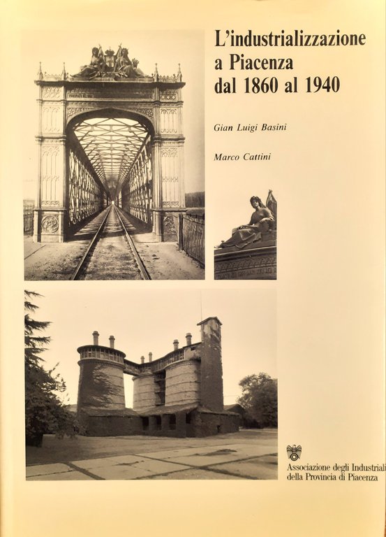 I ed. con una monografia sulla archeologia industriale nel piacentino a cura di A. Negri e le biografie di alcuni dei protagonisti dell'imprenditoria industriale piacentina a cura di E.F. Fiorentini. In-4, pp. 304, cart., sovracc. con illustrazioni in b/n (primo piatto: Portale di accesso al ponte ferroviario sul Po, 1862; Particolare del portale rappresentante l'industria; Fornaci da calce di Ponte dell'olio - secondo piatto: Ingranaggio macina di molino). Stato buono"