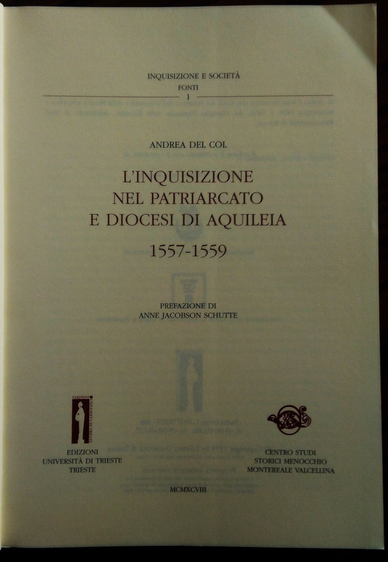 L'inquisizione nel Patriarcato e Diocesi di Aquileia 1557-1559. Prefazione di Anne Jacobson Schutte.