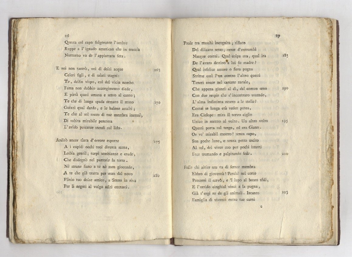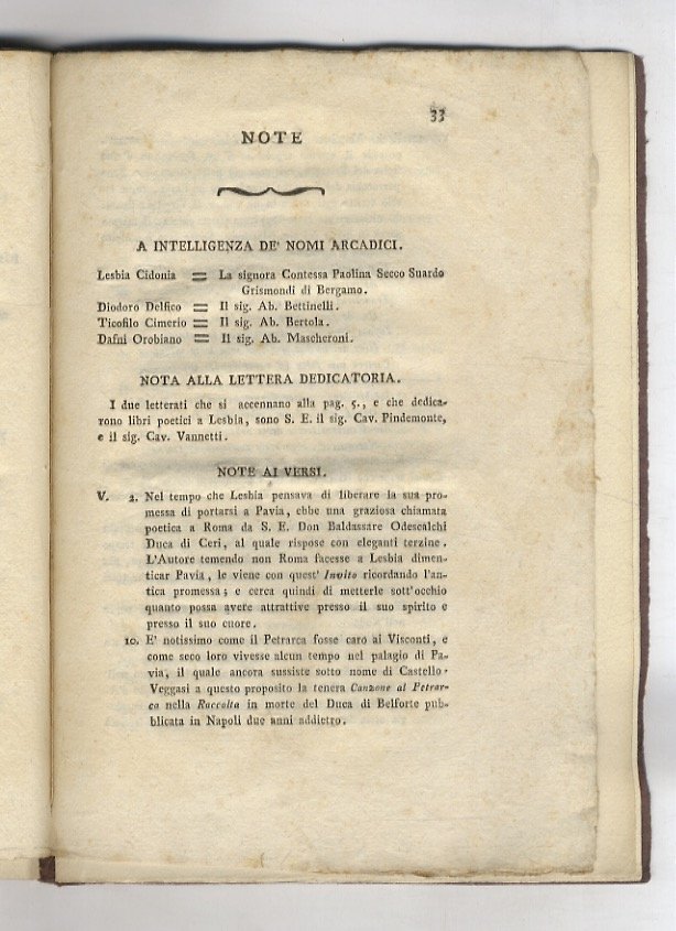 Milano, presso Giuseppe Galeazzi, 1793, in-8, br. muta moderna, pp. 39, [1]. Per il nome dell'autore, Lorenzo Mascheroni, cfr. Melzi, v. 1, p. 272. Lesbia Cidonia è la contessa Paolina Grismondi Secco Suardi. Stesso anno della prima edizione.