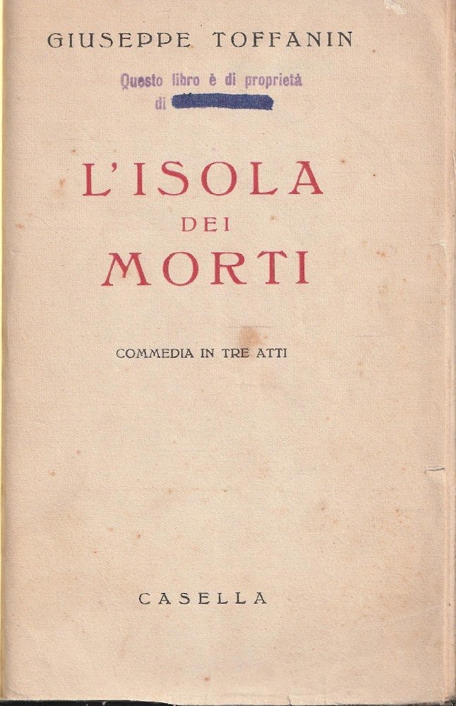 L'isola dei morti. Commedia in tre atti | Libri antichi e moderni | G. TOFFANIN, ,G. TOFFANIN