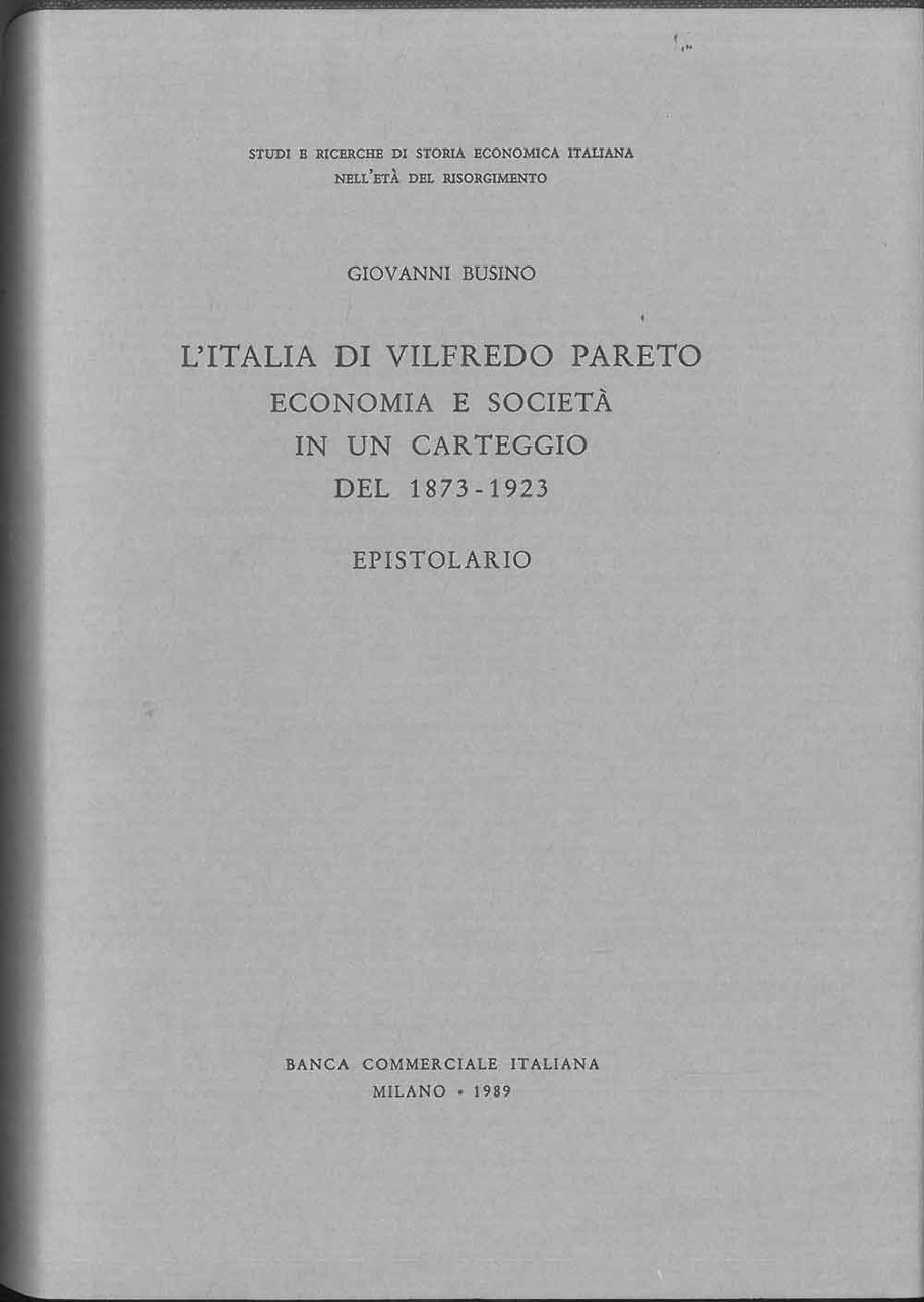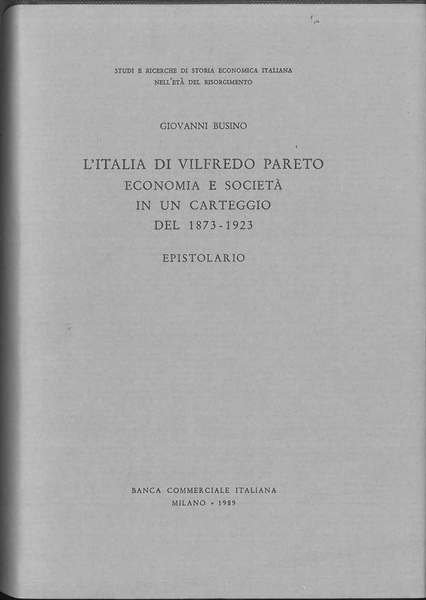 L' Italia di Vilfredo Pareto. Economia e società nel carteggio del 1873-1923