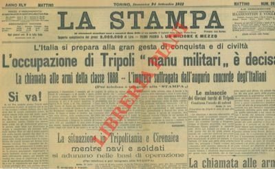Torino, 1911, 24 settembre, titolone in prima pagina de "La Stampa"