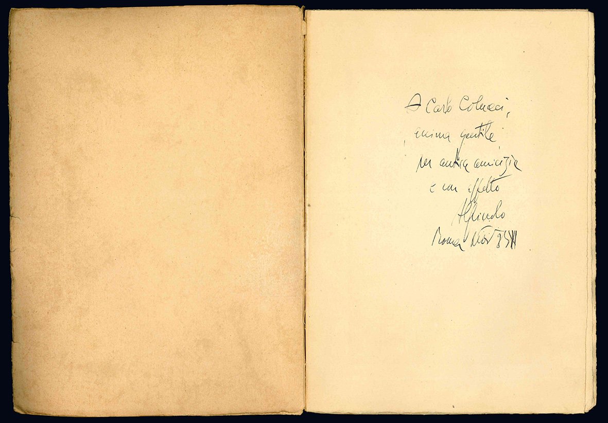 In 8vo grande (mm 247x172); pp. XV, [1], 93, [3], con [1] c. di tav. fuori testo. Bel ritratto dell'A. di H. Reny in antiporta, lettera a stampa applicata di Ettore Zoccoli all'A. Dedica autografa dell'A. a Carlo Colucci al recto della prima carta. Cartoncino editoriale stampato. Leggeri aloni, minime mancanze marginali e al dorso. Un po' sciolto. Bell'esemplare intonso e a fogli chiusi di questa edizione di 250 copie.