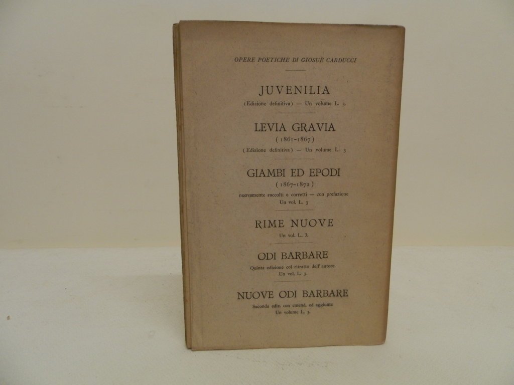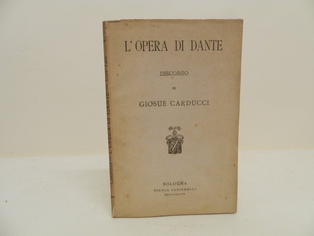 8^, mm 230x250, pp. 62, (2), brossura editoriale, ottimo stato di conservazione, aloni di polvere ai margini della copertina e al dorso. Prima edizione(?). Il celebre discorso carducciano venne tenuto a Roma l'8 gennaio 1888. "Avvenne che della Divina Commedia, rimanendo vivo tutto quel che è concezione e rappresentazione individuale, fosse già antica fin nel trecento la forma primigenia, la visione teologica: per ciò Dante non ebbe successori in integro." . *** TUTTI I NOSTRI LIBRI SONO VISIBILI PREVIO CONTATTO MAIL O TELEFONO NELLA NUOVA SEDE DI MILANO: LIBRERIA COSMOPOLIS, VIA JOMMELLI, 22. ***