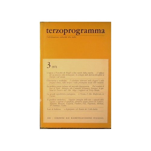 L'opera e l'eredità di Hegel a due secoli dalla nascita - Cibernetica e Medicina - La politica estera italiana nel dopoguerra - Le grandi repubbliche partigiane - Il giardino simbolico - Luci di Bohèm