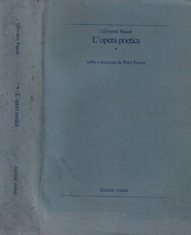 Opera scelta e annotata da Piero Treves. Legatura tutta tela azzurra, con titoli solo al dorso e leggero alone causa umidità ai margini inferiori e con sovraccoperta con alette, in cartoncino, con lievi segni d'uso e leggeri aloni in particolare al dorso. Tagli e pagine appena ingialliti; quest'ultime salde, con ampio margine e con testi in italiano ed alcuni in francese e latino. Numero pagine 814.