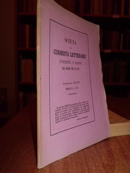 (Curiosità letterarie inedite o rare). L' Orlandino. Canti due di messer Pietro Aretino. Bologna, G. Romagnoli, 1868. In - 16°, br., cop. orig. 30, (2) pp. con facsimile del frontespizio originale. Edizione di soli 202 esemplari (es.n°113). Ottimamente conservato. Uff. Scat. 6.