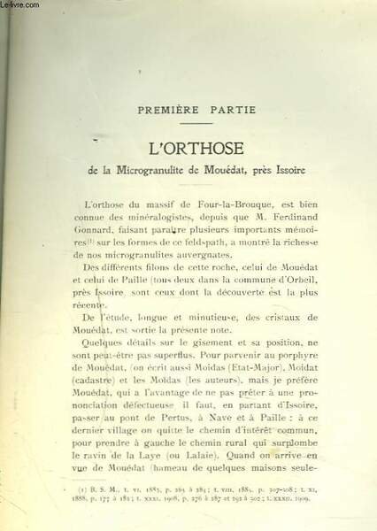 L'ORTHOSE DE LA MICROGRANULITE DE MOUEDAT, PRES ISSOIRE par A. VIGIER / UNE INVASION DE CAMPAGNOLS DA2NS LE PUY-DE-DOME par P. GILLIN / CATALOGUE DES COLEOPTERES DU DEPARTEMENT PUY-DE-DOME par LOUIS BREVIERE / MELANGES / BIBLIOGRAPHIE 1908-1909.