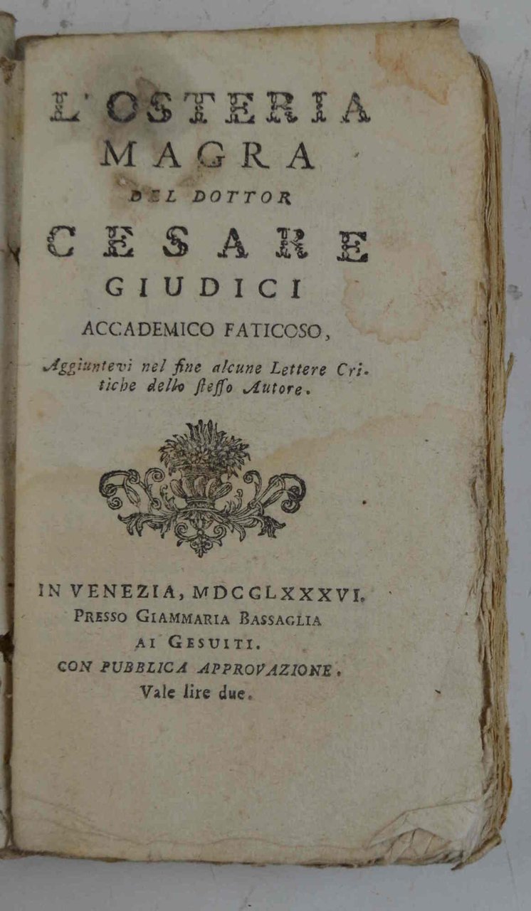 L'osteria magra del dottor Cesare Giudici accademico faticoso. Aggiuntovi nel fine alcune Lettere Critiche dello stesso Autore.