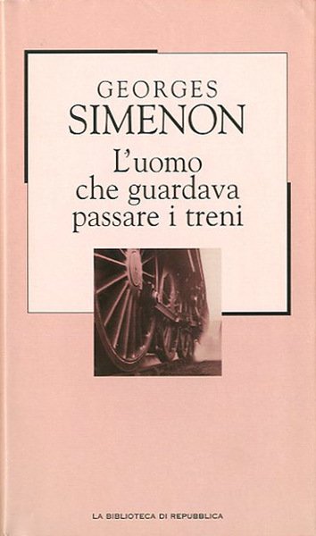 189 p. ; 21 x 13 cm. La Biblioteca di Repubblica. Novecento, 27. La sera di un giorno qualsiasi, Kees Popinga si appresta a fumare un sigaro. Anche la sua vita è qualsiasi, e questo lo rallegra. Impiegato di una solida ditta olandese, è abituato a spartire le sue ore con perfetta regolarità. I suoi sentimenti non usano deviare, se non impercettibilmente, come per esempio per «quella certa emozione furtiva, quasi vergognosa, che lo turbava vedendo passare un treno, un treno della notte soprattutto, dalle tendine calate sul mistero dei viaggiatori». Quella sera, poche ore dopo, Popinga fu costretto ad accorgersi che la sua vita si disfaceva come un castello di carte. Ora gli accennava dall'oscurità una nuova esistenza, dove avrebbe avuto a che fare con figure per lui estranee: il sangue, le donne, l’imbroglio, il caso, la fuga, la paura, l’esaltazione, il falso, la polizia. Titolo originale dell'opera: «L'homme qui regardait passer les trains». Traduzione di Paola Zallio Messori. Supplemento a "La Repubblica". Legatura editoriale, coperta in cartone rigido telato di colore azzurro, con impresso il titolo in nero al dorso, muto al piatto. Sovraccoperta di colore rosa, illustrata a colori. Codice libreria 5047.