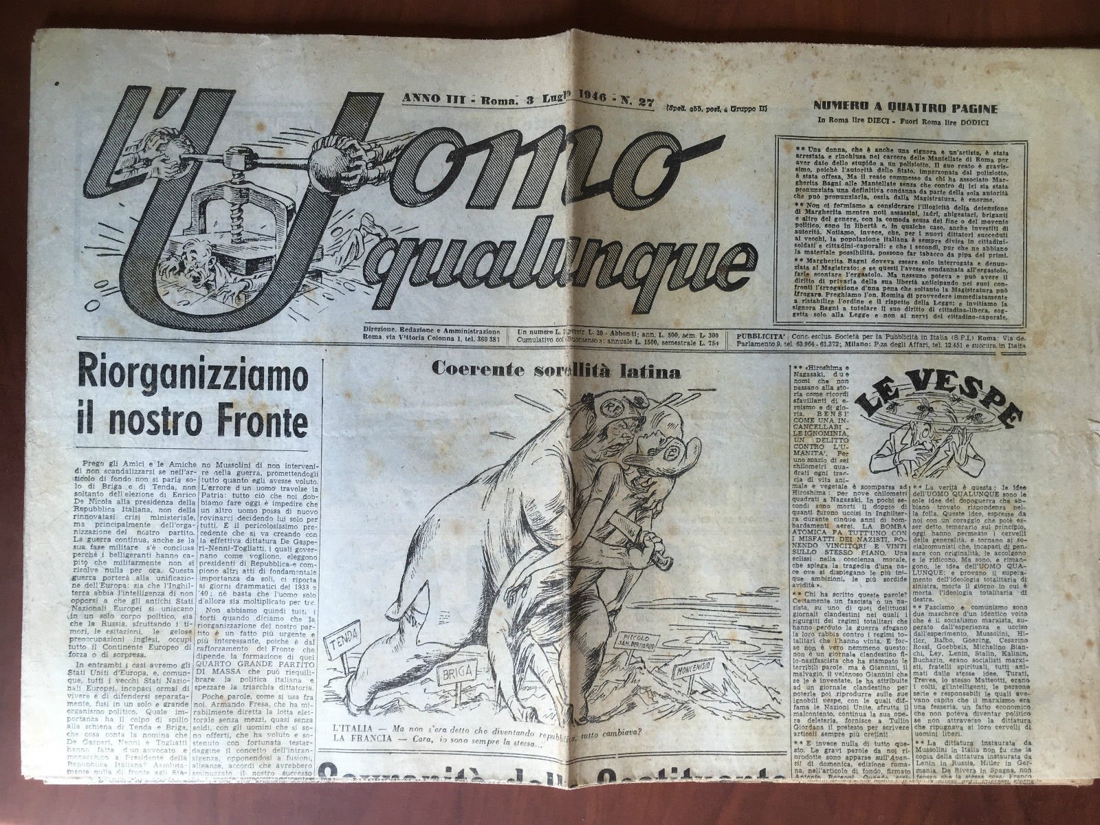 L'Uomo qualunque Anno III Roma 3 Luglio 1946 n^ 27 - E21713