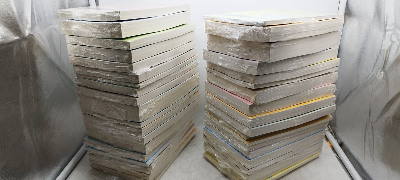 i volumi sono ancora sigillati/ solo il retro di tuti i volumi il cellophane e aperto in parte come si nota in foto