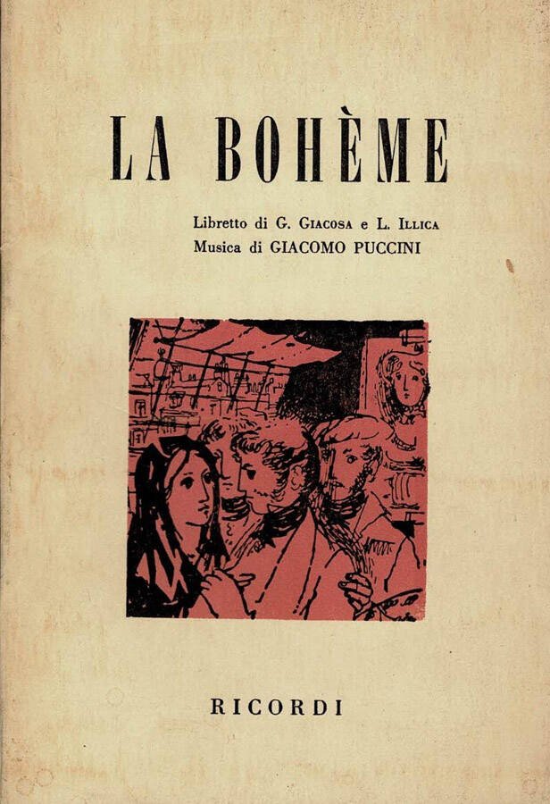 Brossura pocket contenente il libretto d'Opera de " La Bohème ", musicata da Giacomo Puccini, copertina morbida illustrata da una immagine in bicromia in cornice al centro del piatto, ombrata da veli di polvere, appena scurita e leggermente sgualcita dalle consultazioni, l'interno del volume si presenta in ottime condizioni con carte lievemente brunite, ma prive di imperfezioni. N. pag. 96.