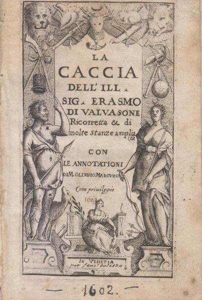 La caccia dell'ill. Sig.Erasmo di Valvasone ricorretta & di molte stanze ampliata. Con le annotazioni di M.Olimpio Marcucci