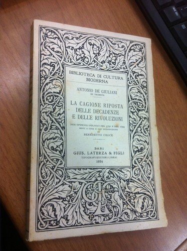 Due opuscoli politici del 1791 e del 1793 editi a cura e con introduzione di Benedetto Croce. Bari. Laterza 1934, 8°, pp. XXVIII+110. Buon esemplare.
