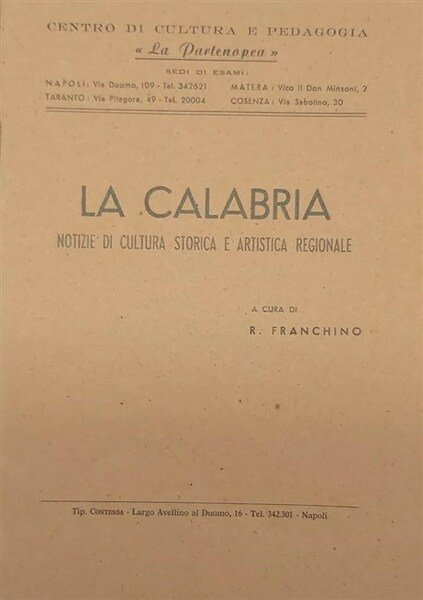 LA CALABRIA. Notizie di cultura storica e artistica regionale. Centro di Cultura e Pedagogia "La Partenopea".