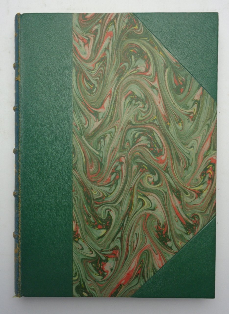 Quattro volumi (19x28 cm) in mezza pelle verde a punte, dorso a nervi con titoli dorati, piatti e risguardie con carta marmorizzata, custodia in cartone rigido. Brossure originali conservate all'interno. Volume 1: V-354 pagine, con 8 tavole e 101 figure. Volume 2: VIII-562 pagine, con 3 tavole e 124 figure. Volume 3: XII-583 pagine, con 123 figure. Volume 4: VII-596 pagine, con 4 tavole e 80 figure (quest'ultimo volume pubblicato da Maglione e Strini, successori di Loescher). Ottime condizioni, solo qualche usura ai dorsi. Prima edizione completa ed organica di queste monografie, già comparse in forma diversa e limitata tra il 1885 e il 1907 da Forzani. “Nel 1909 il cavalier Walter Regenberg della casa editrice Loescher offrì a Tomassetti l’opportunità di ripubblicare questi saggi scissi e sparsi in un’opera unica da destinare non ai dotti ma alle persone colte, con i necessari ampliamenti diacronici e corredandola di opportune illustrazioni. Lo studioso accettò la proposta e riplasmò tutto il lavoro, sviluppandolo oltre i termini del Medioevo (in ‘alto’ e in ‘basso’), avvalendosi in larga misura del supporto delle scienze antropologiche, etnologiche, economiche e sociali, ma soprattutto aggiornandolo sotto il profilo bibliografico. Poté curarne in prima persona, però, solo i primi due volumi (La Campagna romana antica, medioevale e moderna, Roma 1910), contenenti l’introduzione generale e l’analisi dettagliata dei territori attraversati dalle vie Appia, Ardeatina e Aurelia. Morì prematuramente, infatti, a Roma il 22 gennaio 1911. L’iniziativa editoriale, arenatasi per qualche tempo, venne tuttavia ripresa e portata a parziale compimento dal figlio Francesco che, in osservanza ai voti paterni, attese alla stesura e vigilò sulla stampa di ulteriori due tomi dedicati rispettivamente all’illustrazione delle vie Cassia, Clodia, Flaminia, Tiberina, Labicana e Prenestina (volume 3, Roma 1913) e della via Latina (volume 4, Roma 1926)” (DBI Treccani).