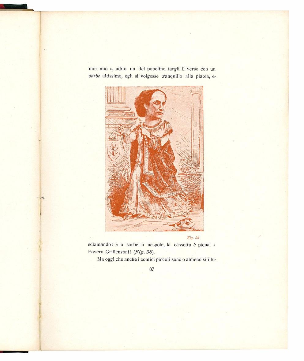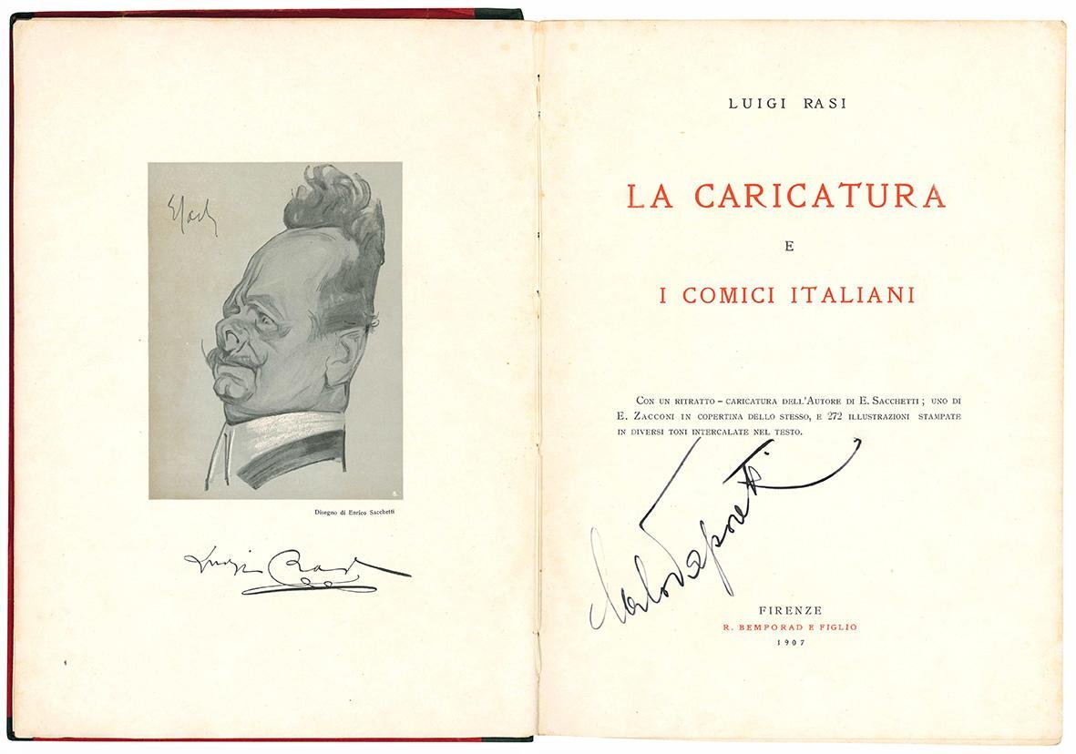 La caricatura e i comici italiani. Con un ritratto - caricatura dell'Autore di E. Sacchetti; uno di E. Zacconi in copertina dello stesso, e 272 illustrazioni stampate in diversi toni intercalate nel testo.