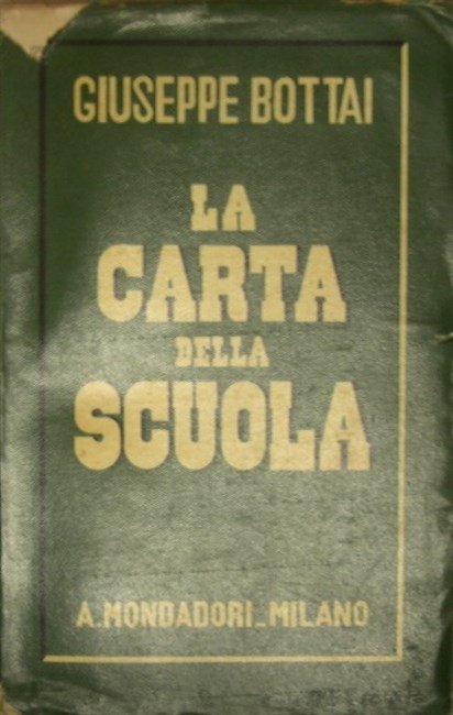 in-8 gr., pp. XV, 322, bross. edit. con sovracop. Prima ediz. del testo della famosa riforma del Ministro Bottai, voluta un anno dopo la promulgazione delle leggi razziali con le quali venivano espulsi dalla scuola pubblica studenti e docenti ebrei.[301]